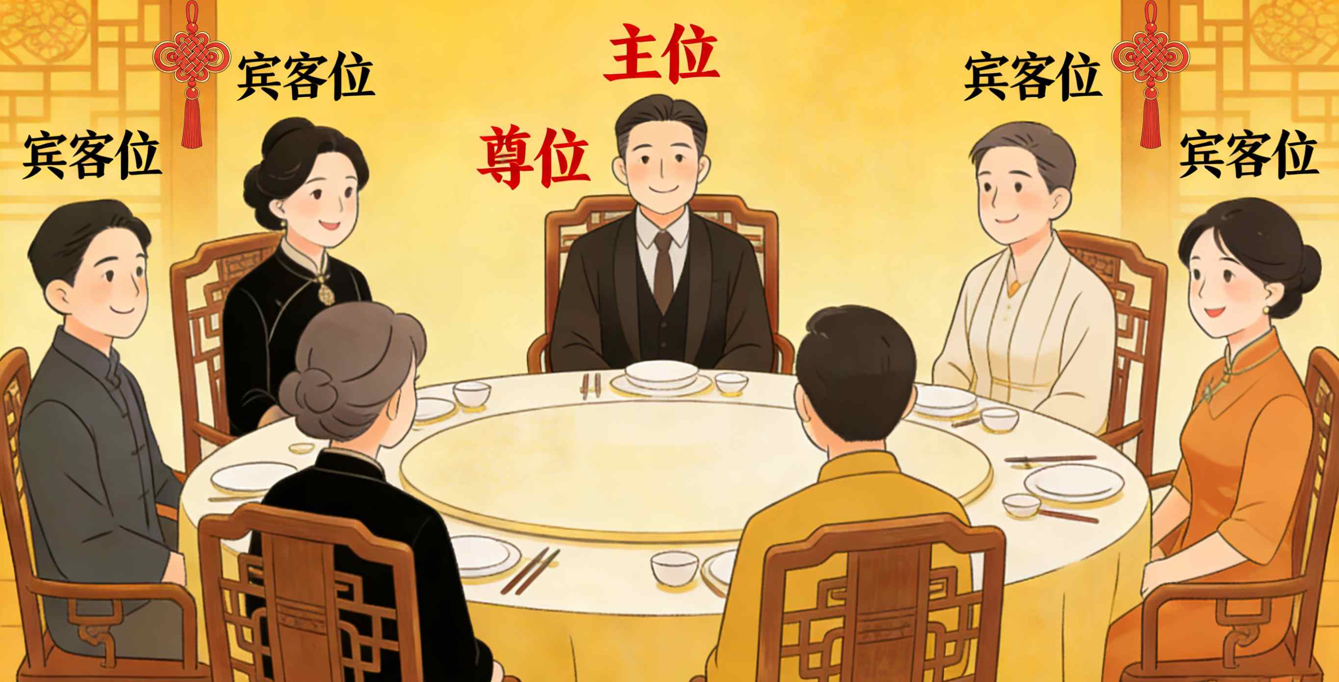 В традиционните китайски места за сядане най-почитаната позиция обикновено е обърната на юг, разположена от северната страна на масата.