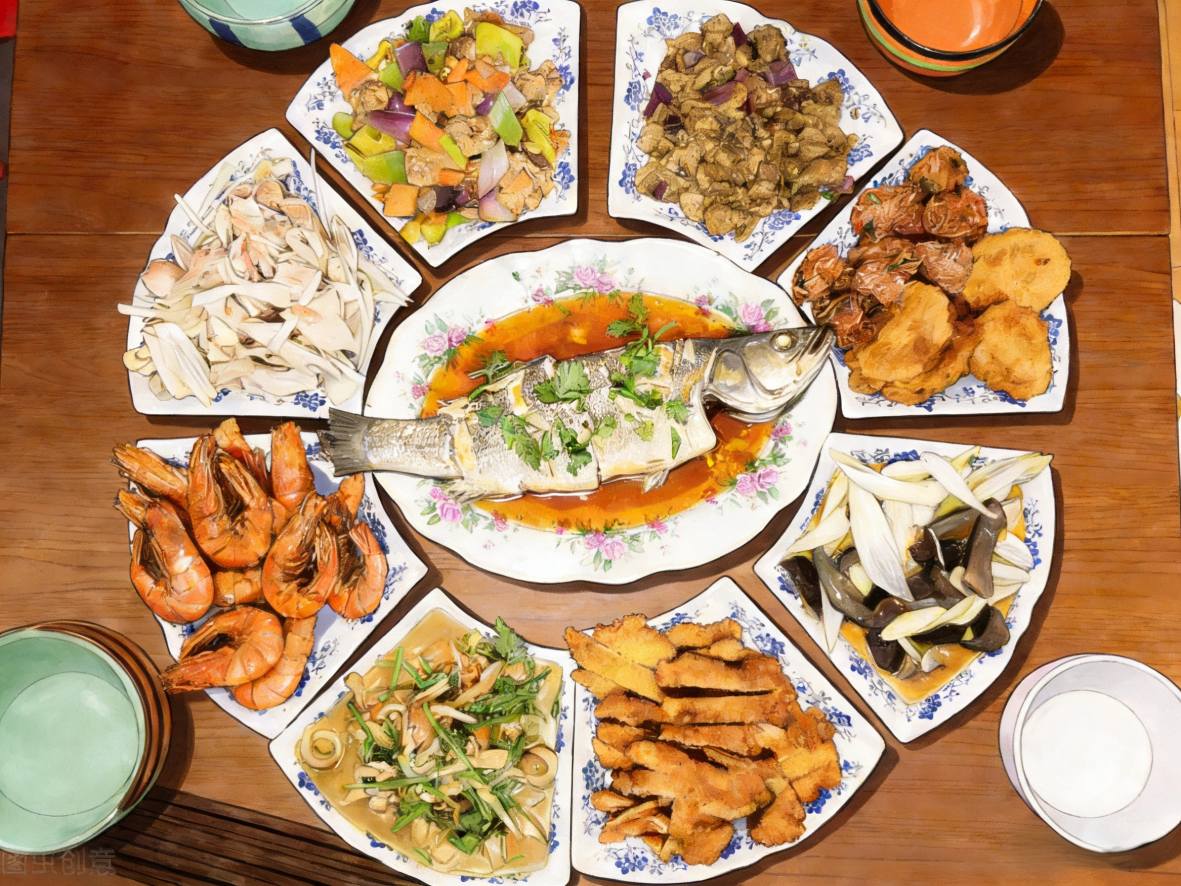 Въпреки че северните и южните райони на Китай имат свои собствени кулинарни традиции, сигурно е, че на храната се придава специално значение в новогодишната вечеря. Както рибата означава желание за просперитет година след година, марулята звучи като забогатяване на китайски.