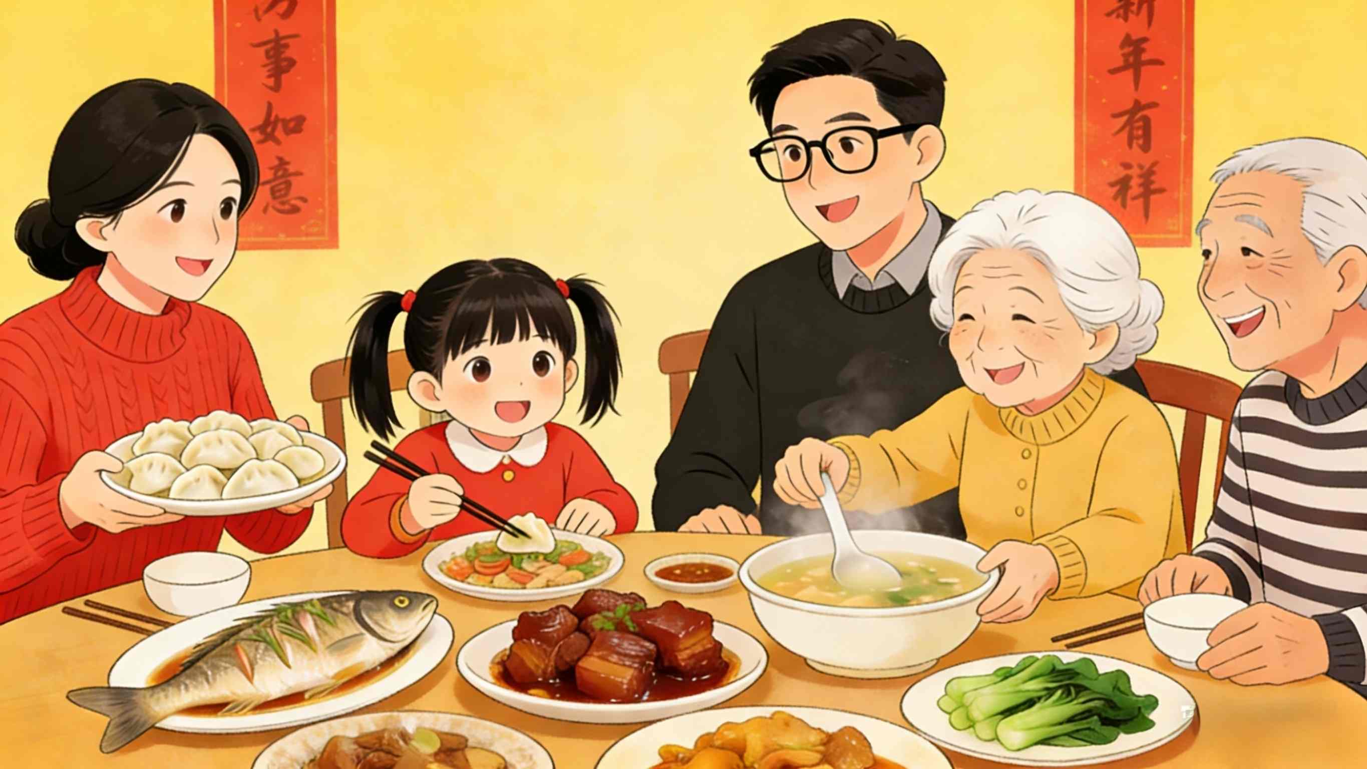 Вечерта на 30 януари, последният ден от годината по китайския календар, семействата се събират на вечеря за събиране, споделяйки топлина и радост в компанията на другия.