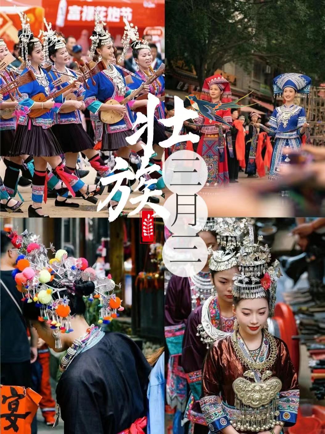Пеене на народни песни, представяне на традиционни костюми, барабани, танци и пируване на банкет на дълга маса – все повече и повече традиционни дейности ще се провеждат от третия ден на третия лунен месец до 19 април през 2026 г. в Гуанси.